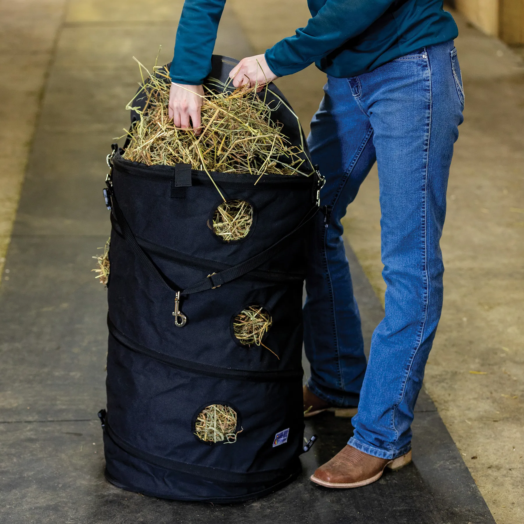 - Features an easy-fill design with a wide mouth for quick and hassle-free loading of hay, reducing mess and saving time.