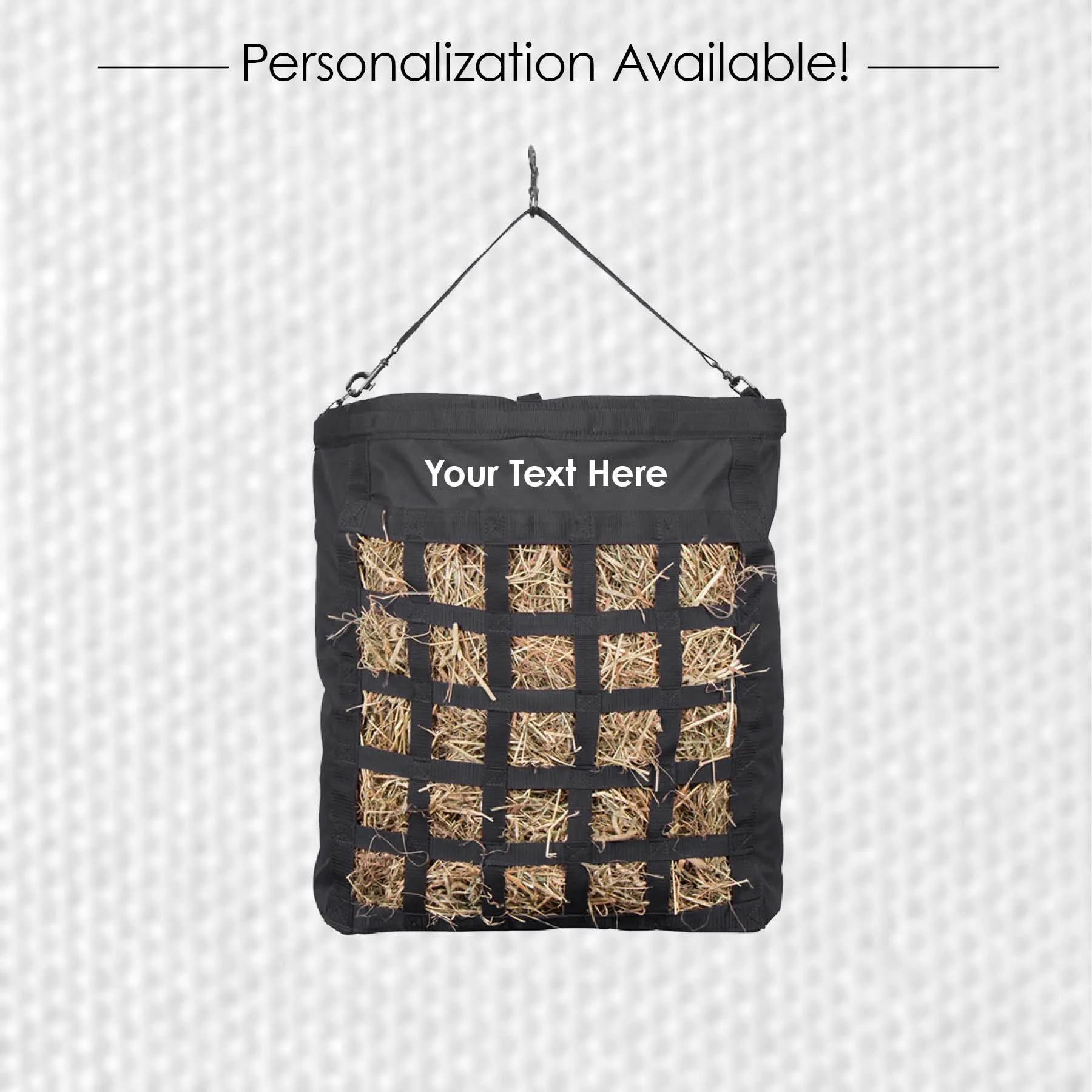 - Enhance your horse’s feeding routine with the Dura-Tech® Full Bale Slow Feed Net Hay Bag. Engineered to slow down hay consumption, this hay feeder promotes healthier eating habits and reduces waste.
