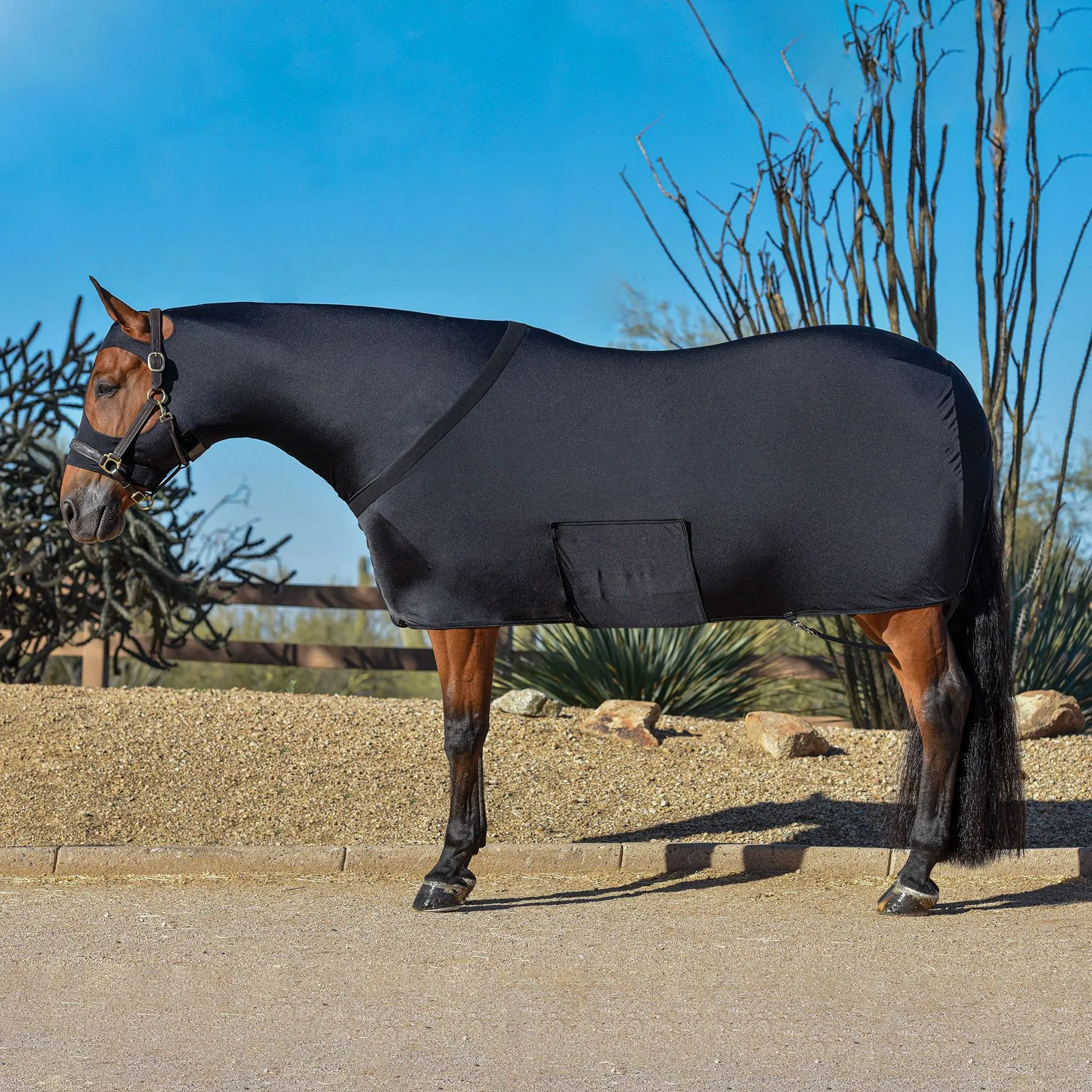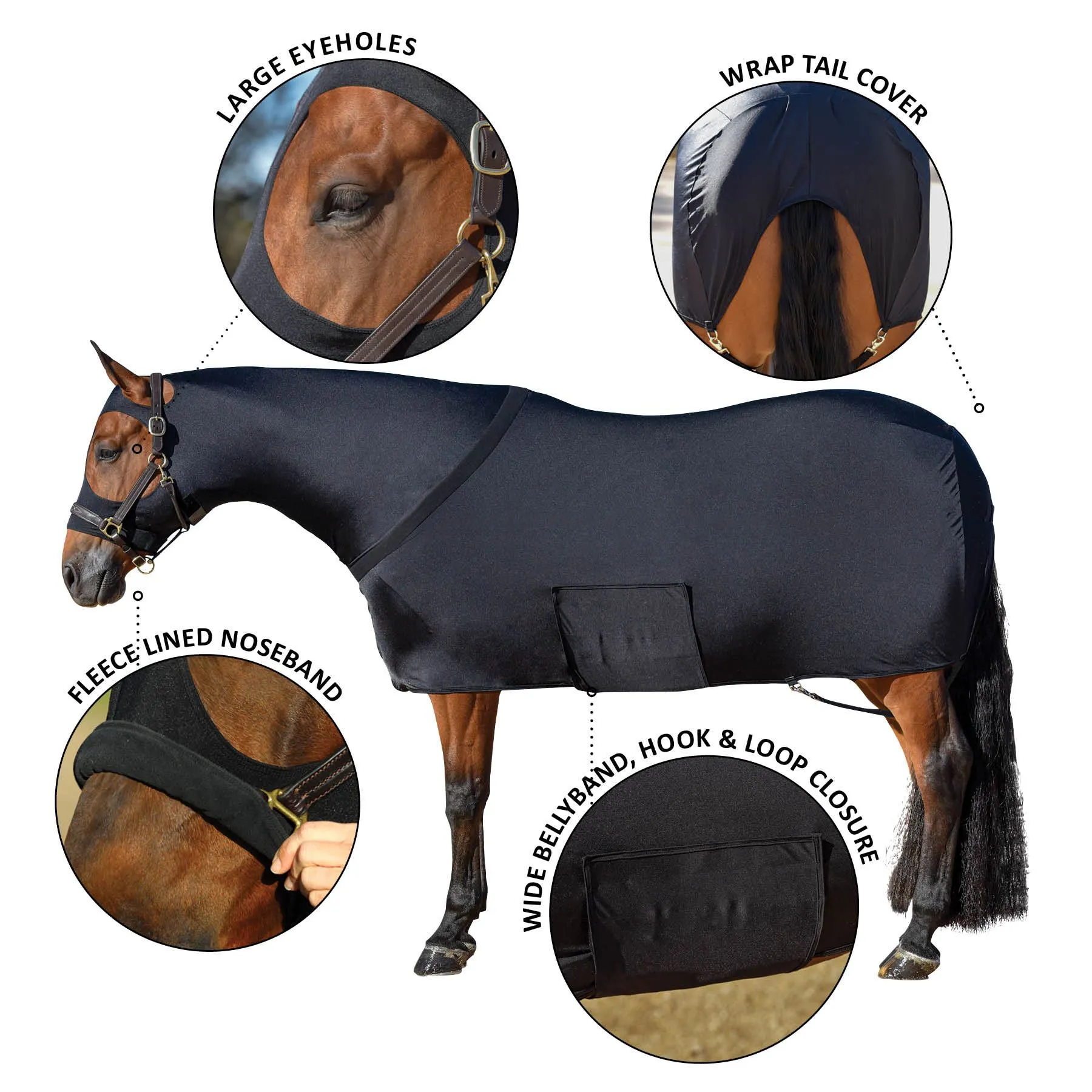 - Features a full-zip design for easy dressing and removal, ensuring a perfect fit for all horse sizes. The sleek and stylish look makes it ideal for shows, competitions, or casual use.