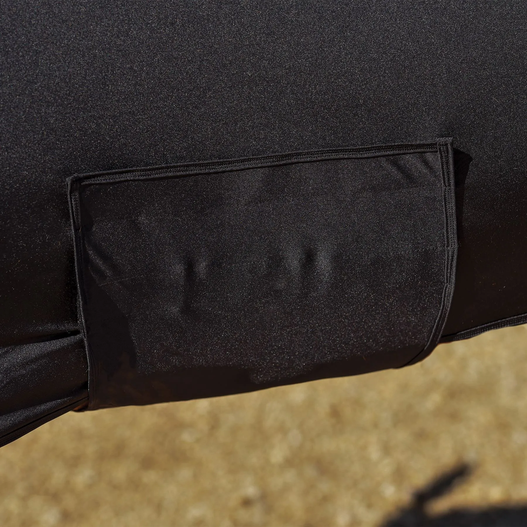 - Wide bellyband closure with hook and loop closure keeps the slicker in place