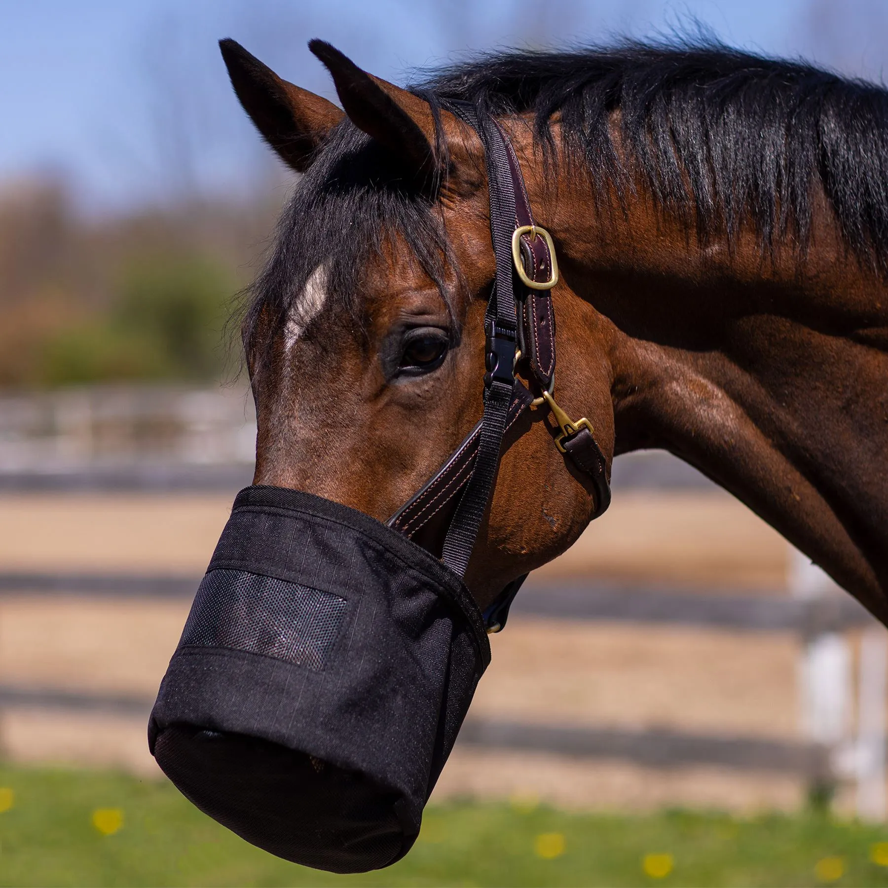 - The feed bag is easy to clean and maintain, ensuring hygiene and convenience for your horse’s feeding routine. Its user-friendly design allows for quick filling and secure attachment.