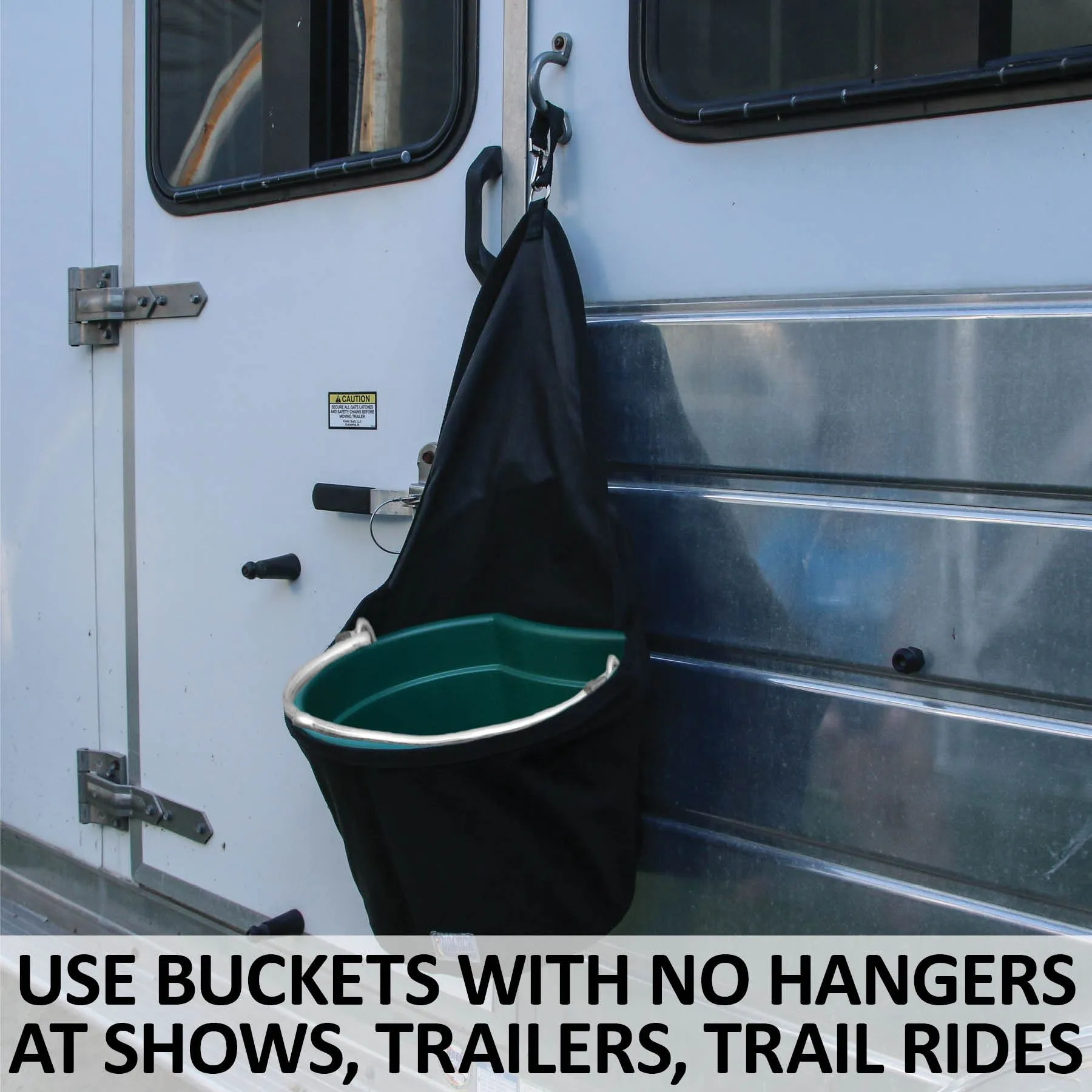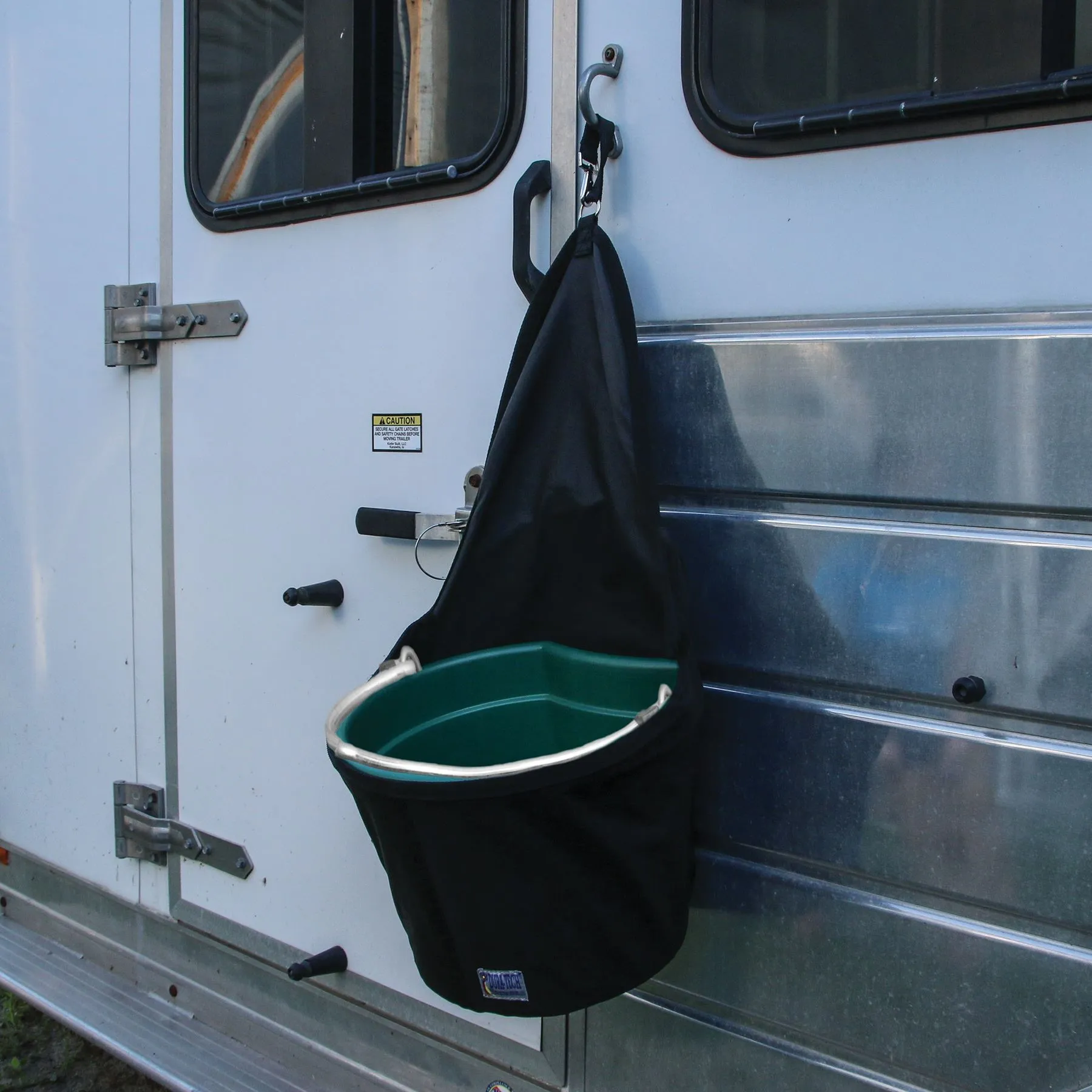 - The Dura-Tech Scratchless Trailer Bucket Bag is designed to provide a durable and scratch-resistant solution for feeding and watering horses. Perfect for use in trailers, stables, or during transport.